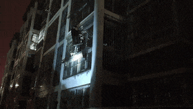 结果当场卡在自家阳台与防盗窗栏杆之间