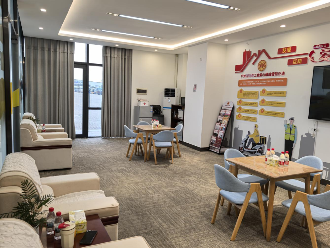 舒适休息室、空调、饮水机、免费Wi-Fi等基础设施